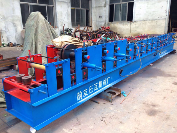 也是一種壓瓦機(jī)設(shè)備,是一套軋輥可生產(chǎn)多種規(guī)格C型檁條成品的單卷成型機(jī)組。C型鋼機(jī)采用自動(dòng)飛鋸沖孔,操作簡(jiǎn)便等特點(diǎn)。
